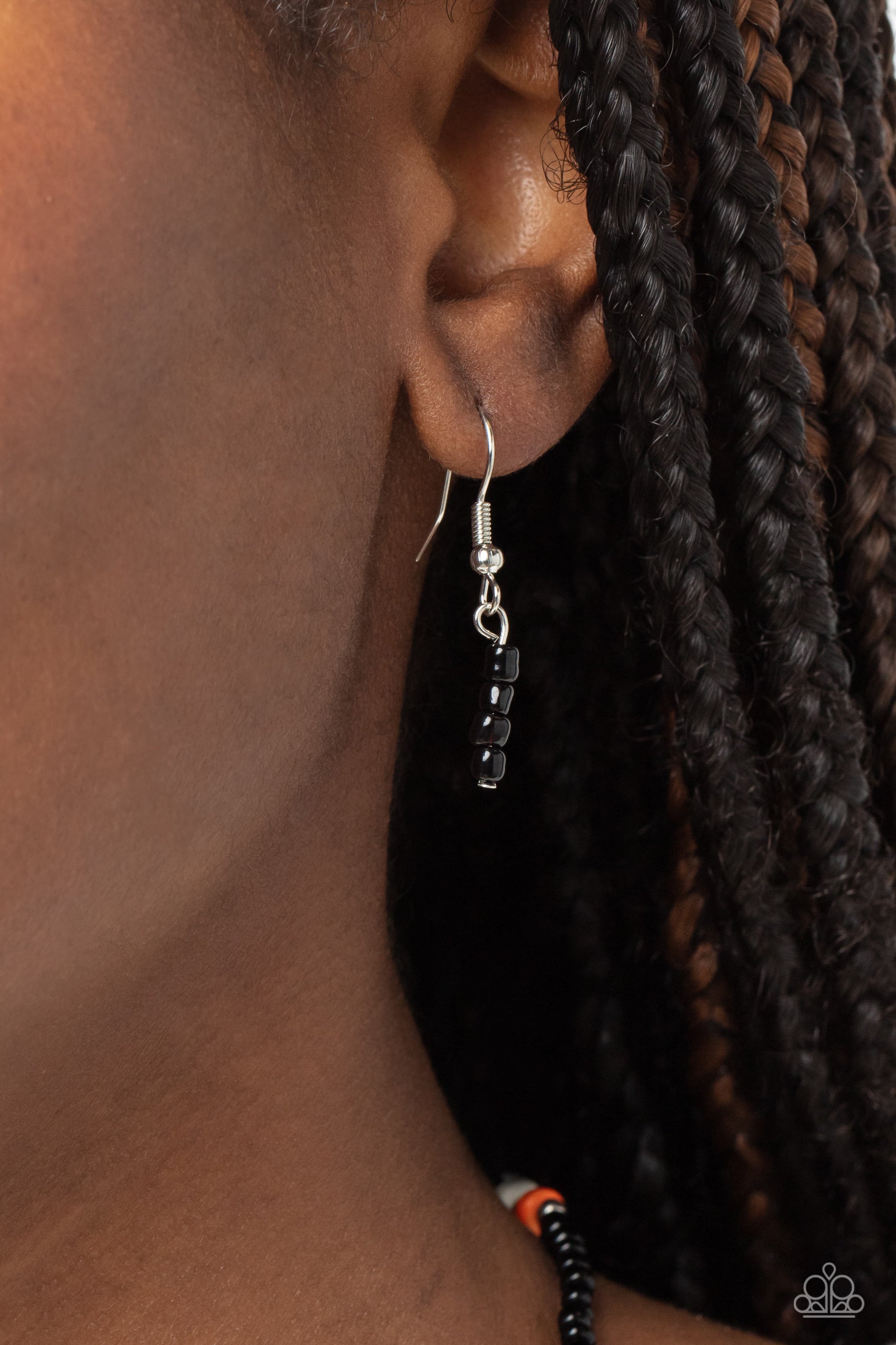 Infused on an invisible wire, black seed beads, silver studs, and circular colorful stones coalesce around the collar for a puka-shell look-alike layer. Features an adjustable clasp closure. As the stone elements in this piece are natural, some color variation is normal.